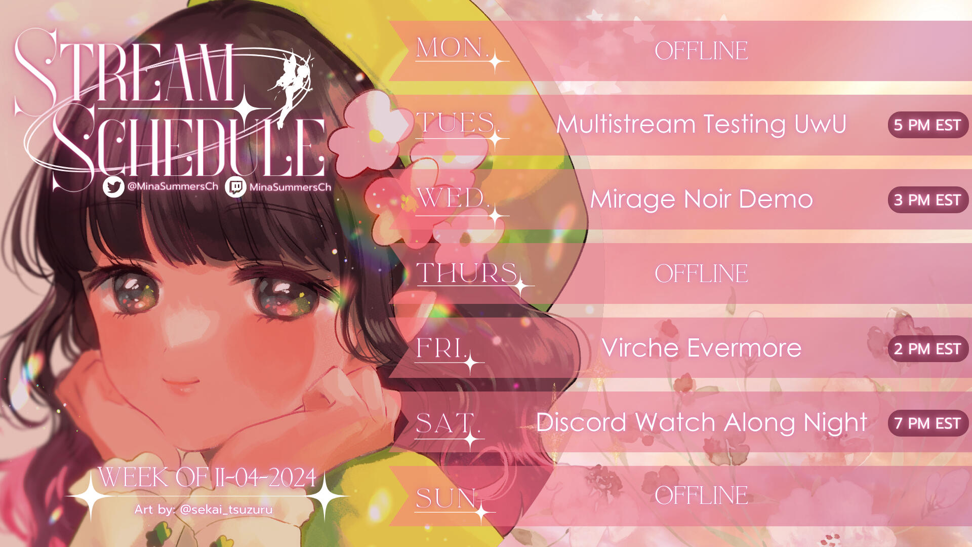 |11/04 - 11/10|‣ Multistream Test -- Nov 5th (Twitch + YouTube)